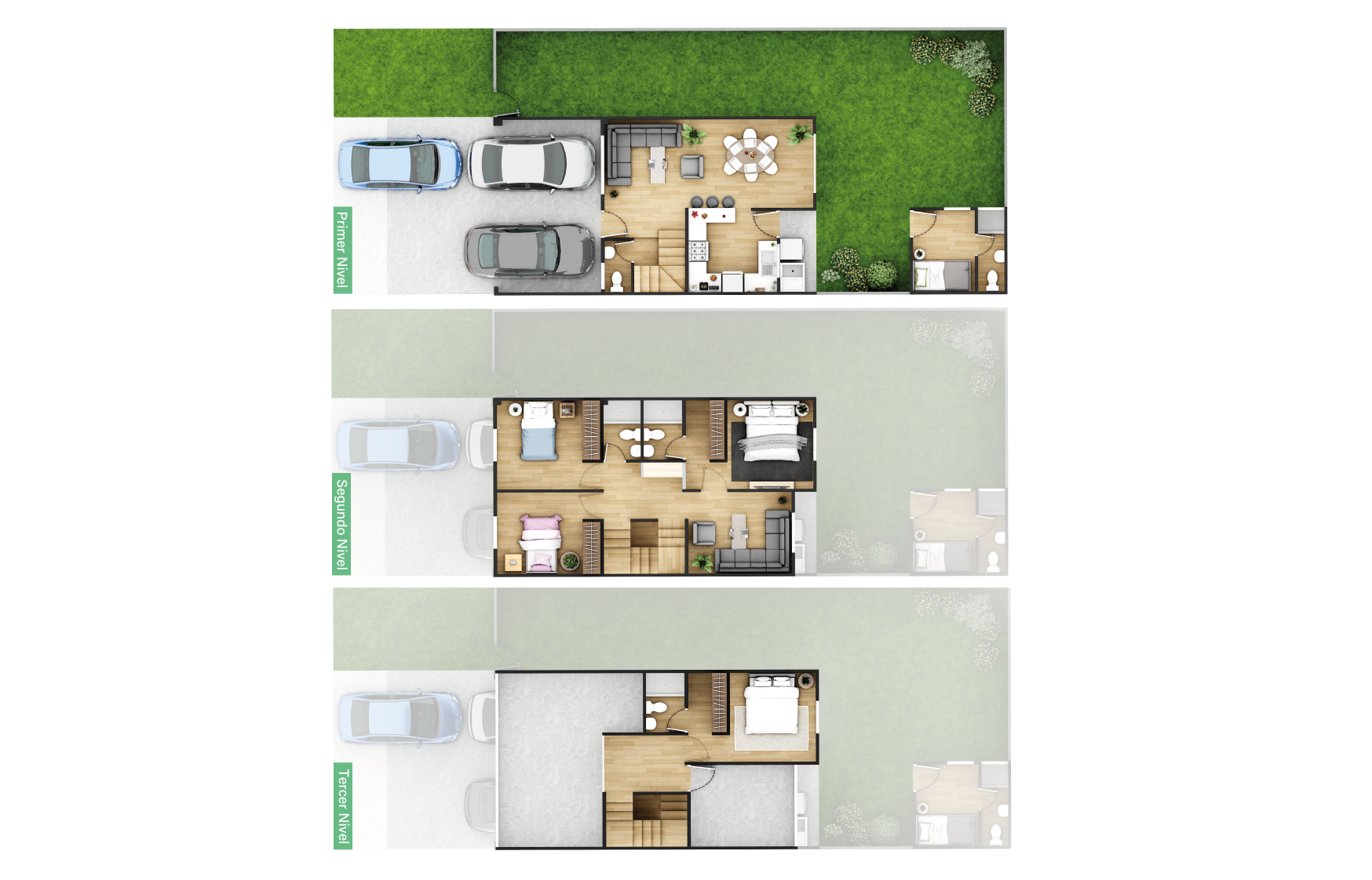Ideal para familias grandes, este modelo ofrece 4 habitaciones y 3.5 baños y parqueo para 4 vehículos. Con un diseño cómodo y funcional, proporciona un ambiente espacioso, perfecto para quienes buscan un hogar más grande.