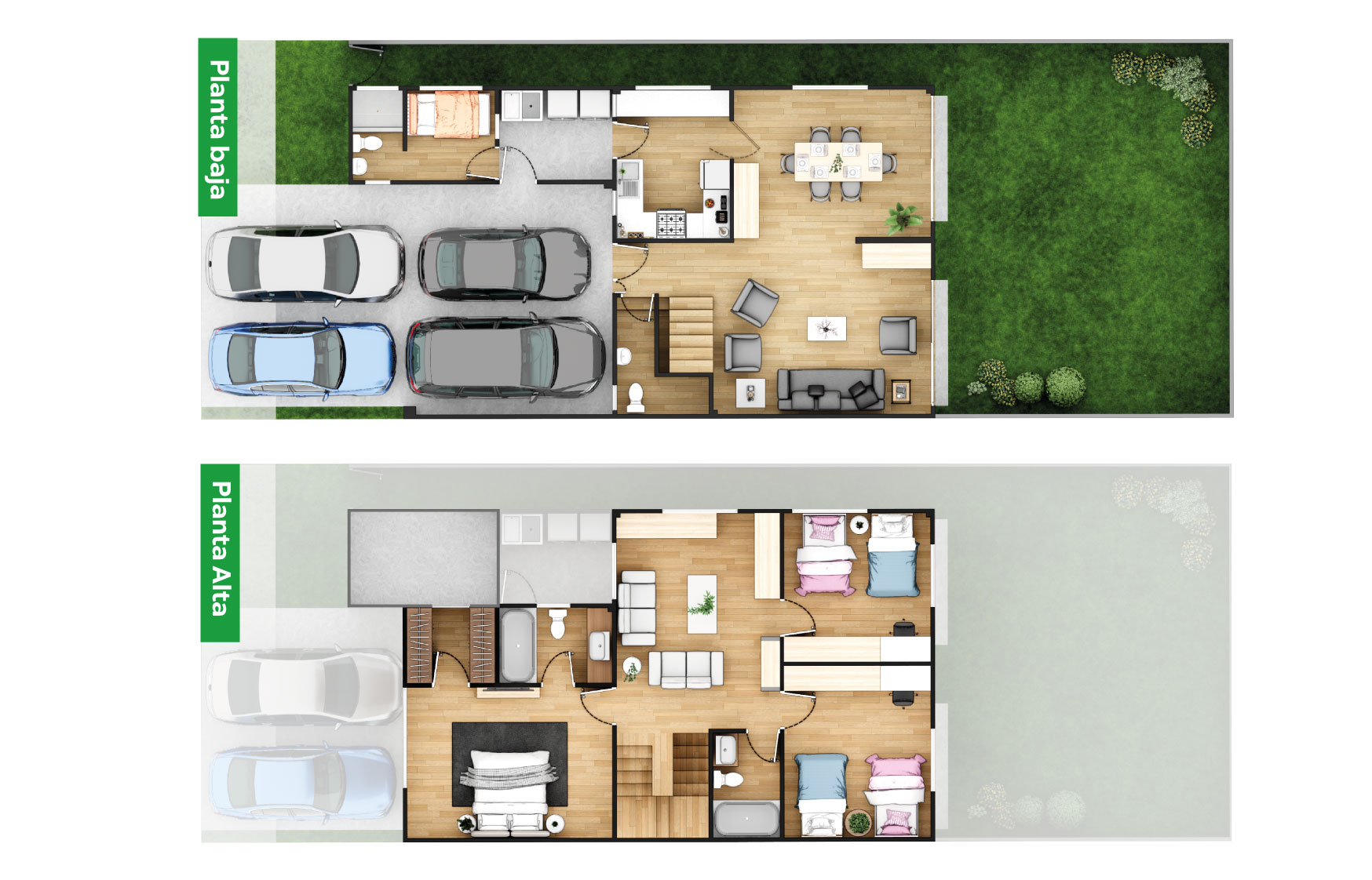 Ideal para familias grandes, este modelo ofrece 3 habitaciones y 2.5 baños y parqueo para 4 vehículos. Con un diseño cómodo y funcional, proporciona un ambiente espacioso, perfecto para quienes buscan un hogar más grande.